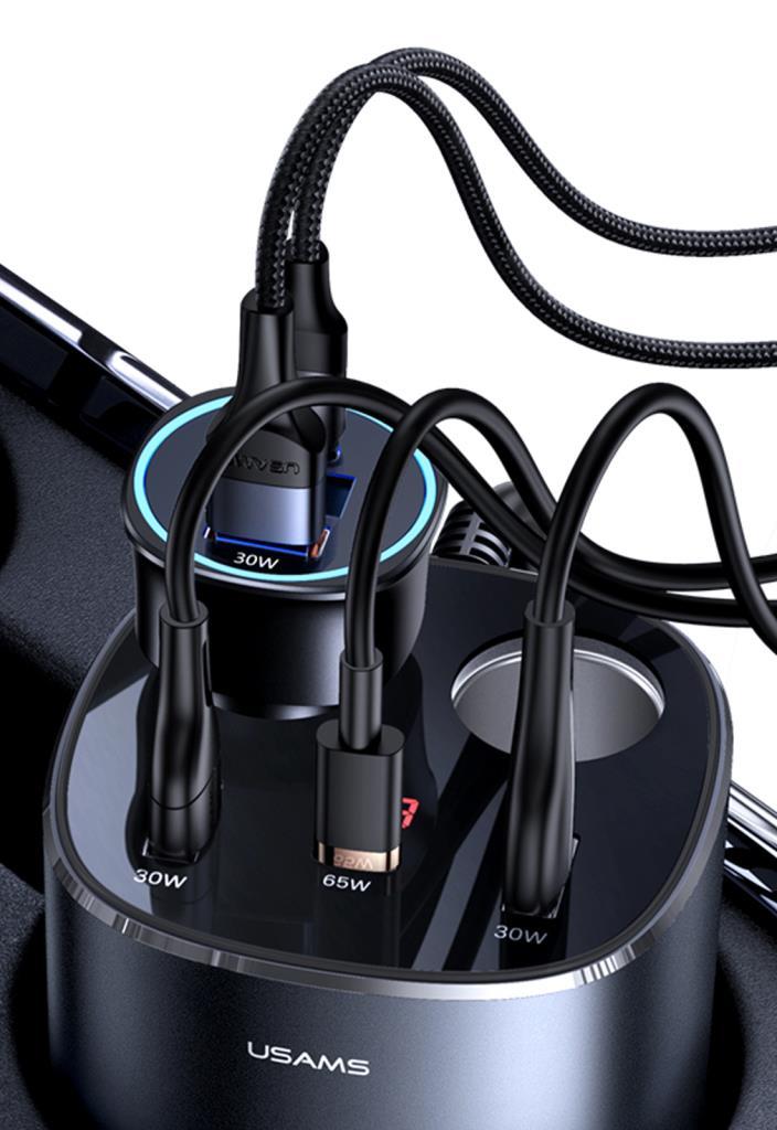 Usams US-CC151 Dijital Göstergeli 2x30w USB+1x65w PD+2x60w Çakmaklık 245w Araç Hızlı Şarj Organizeri